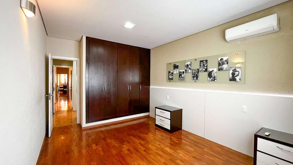 Quatro quartos, todos com ar-condicionado e armários, incluindo duas suítes, sendo uma máster com closet.