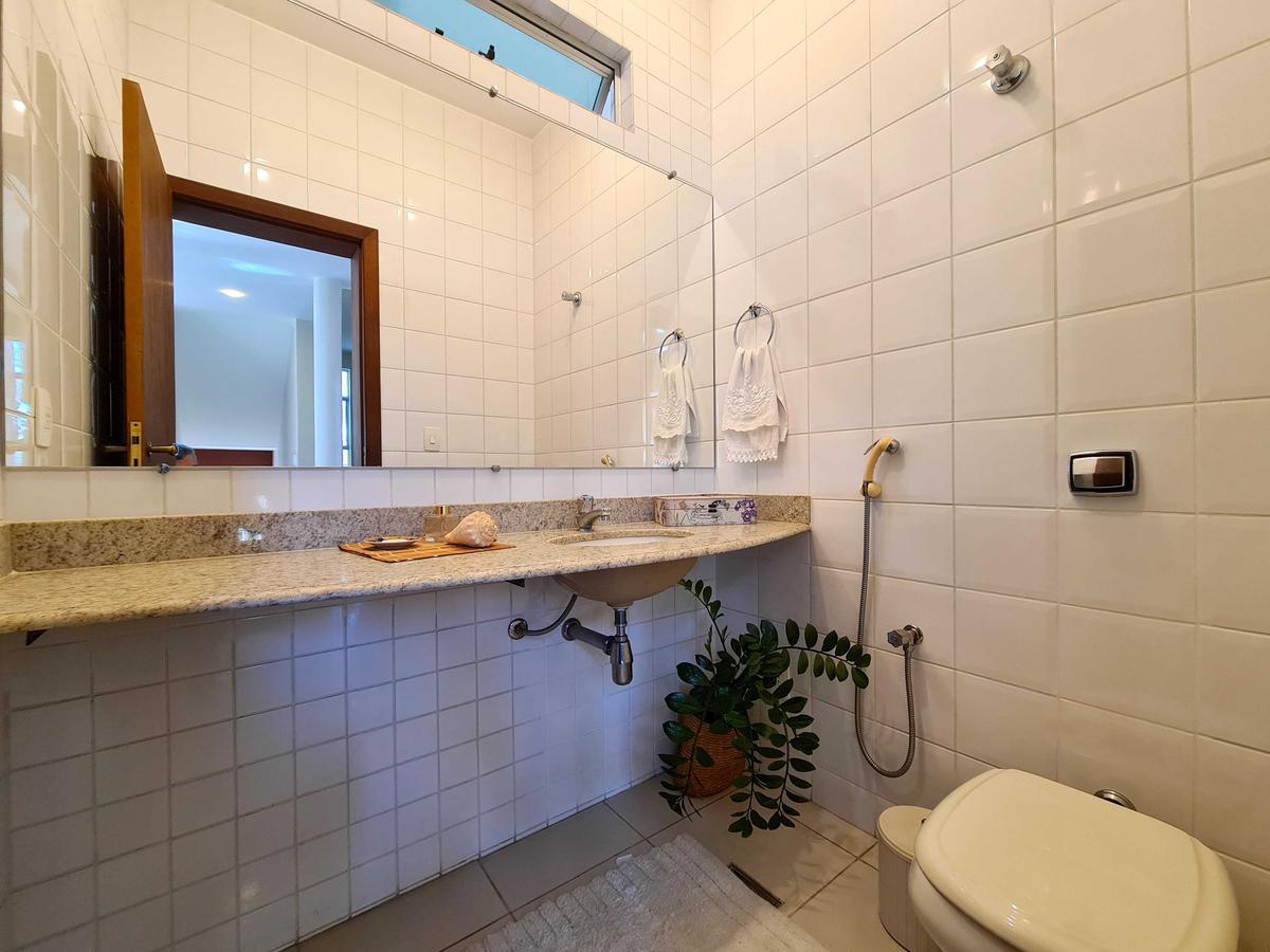 A cozinha tem as paredes todas revestidas, pia de granito e armários planejados. A área de serviço é ampla e oferece toda a infraestrutura necessária para as atividades do dia a dia, além de contar com uma dependência completa de empregada.