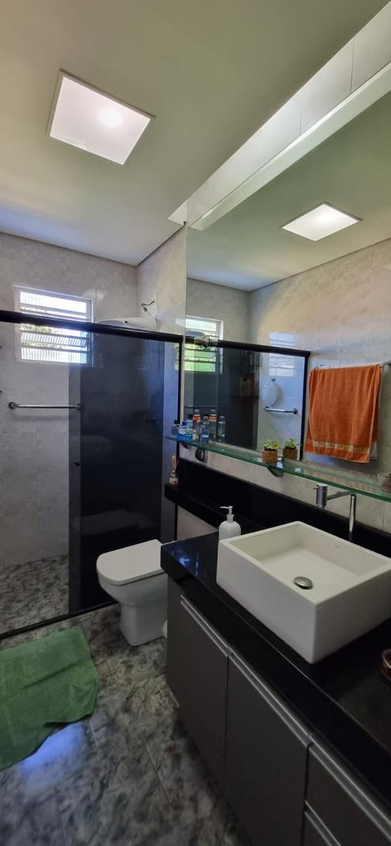 Banho social com armário e espelho bem grande