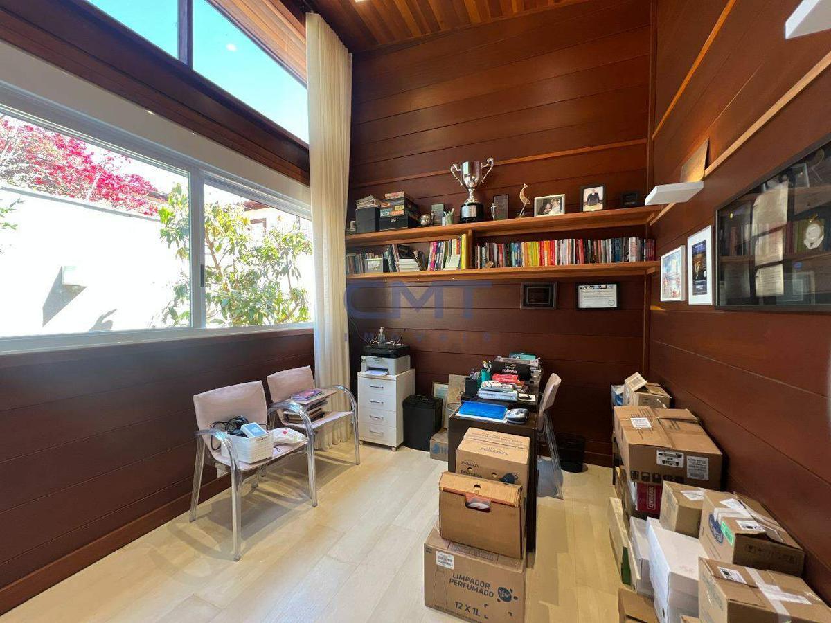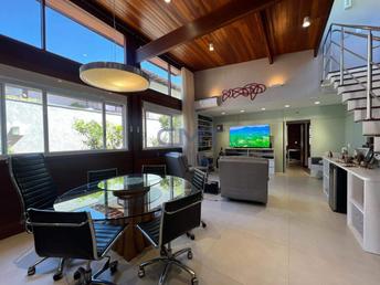 1° piso: ampla sala em para 03 ambientes, 2 escritórios, lavabo, ampla varanda em L com acesso para a sala e a cozinha, 2 amplas suítes, sento a suíte master com generoso closet, cozinha americana toda montada com armários e com fogão em ilha, lavanderia, despensa e banho de empregada.