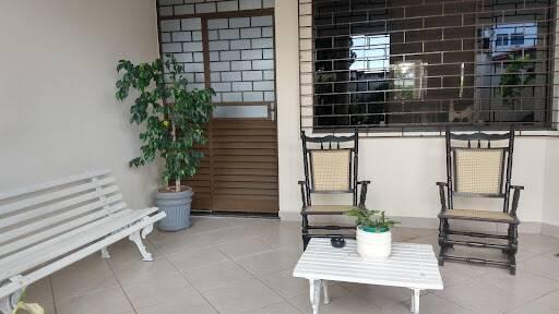 Quintal grande e jardim na entrada, proporcionando um ambiente agradável