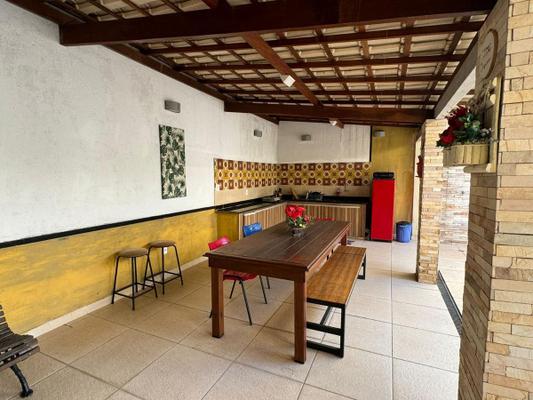 Amplo quintal com espaço gourmet coberto com telhado colonial