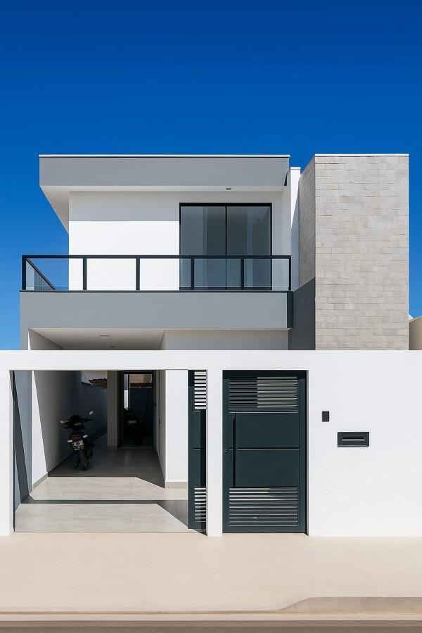 A planta inteligente contempla quatro banheiros, cozinha funcional com despensa estrategicamente posicionada e área de serviço independente, garantindo total praticidade no dia a dia. Cada detalhe do piso de porcelanato às esquadrias de alumínio evidencia o cuidado na escolha dos acabamentos, conferindo durabilidade e requinte. O terreno de 180 m permite ainda um charmoso jardim frontal e espaço para duas vagas de garagem, completando um projeto que valoriza a união entre conforto e design contemporâneo.