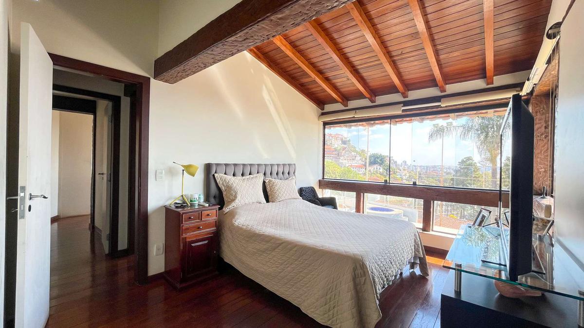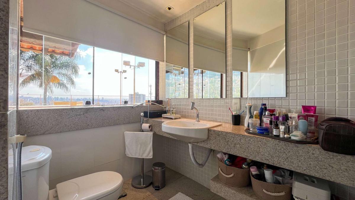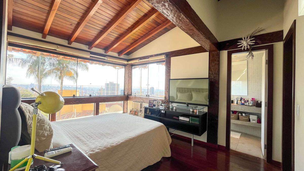 3 Quartos com piso em tábua corrida, armários planejados e grandes janelas com vista para Belo Horizonte e para o jardim, sendo duas suítes e uma delas com suíte máster com closet.