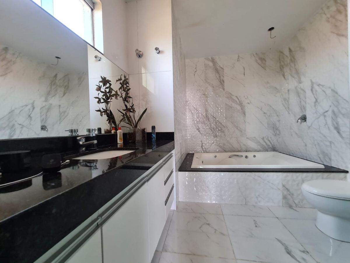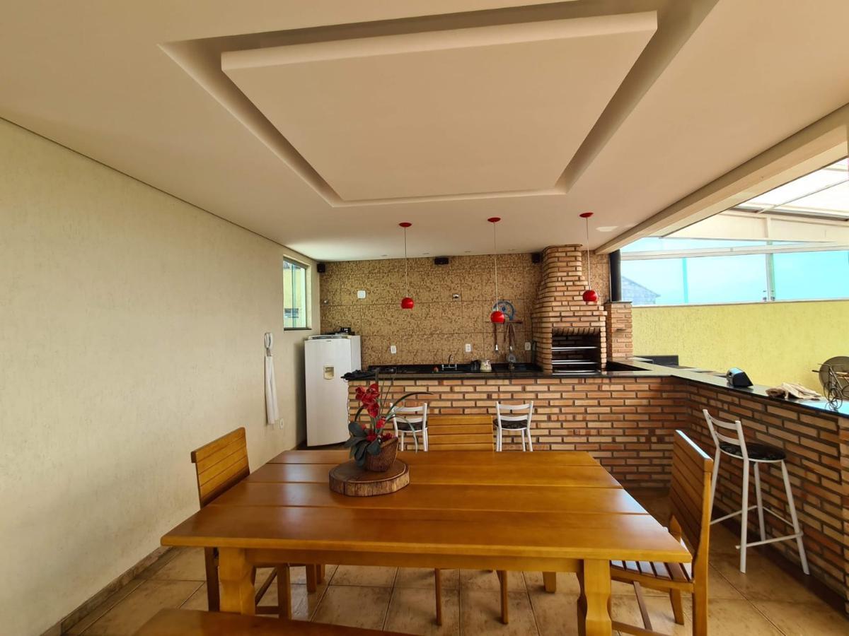 Ampla área externa coberta com bancada e pia em granito,