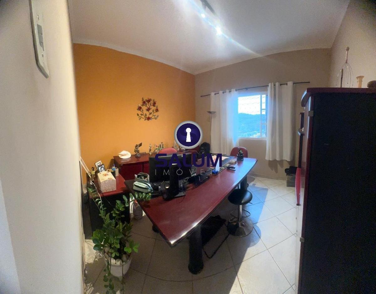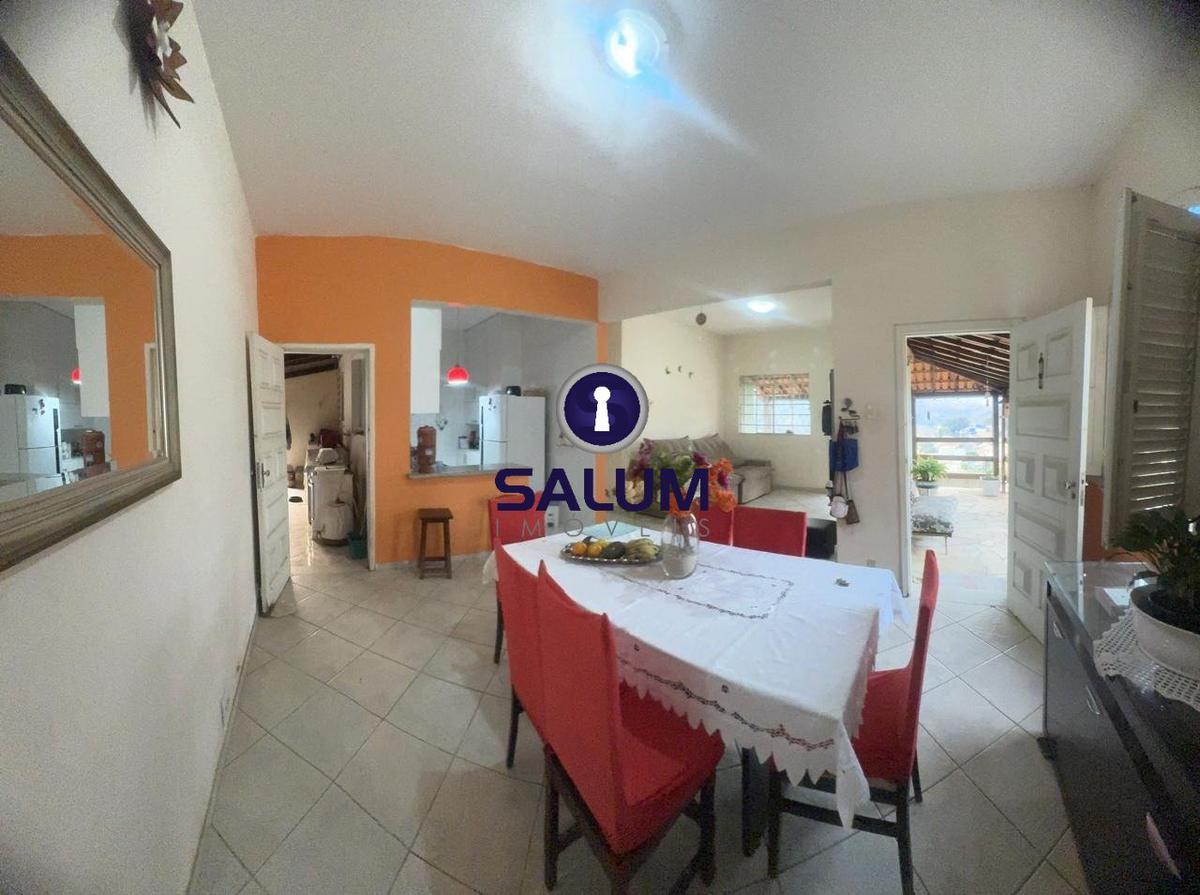 ótima casa com 3 quartos amplos sendo 1 com armário, sala e copa amplas, cozinha com bancada americana e armários, banho social com box em blindex, varanda com linda vista, quintal na frente da casa parte gramada e parte em cerâmica, área de serviços, quintal na parte dos fundos com um barracão de 1 quarto com banheiro, área de sserviços com banheiro de apoio, quintal dos fundos parte gramado com vários pés de frutas.