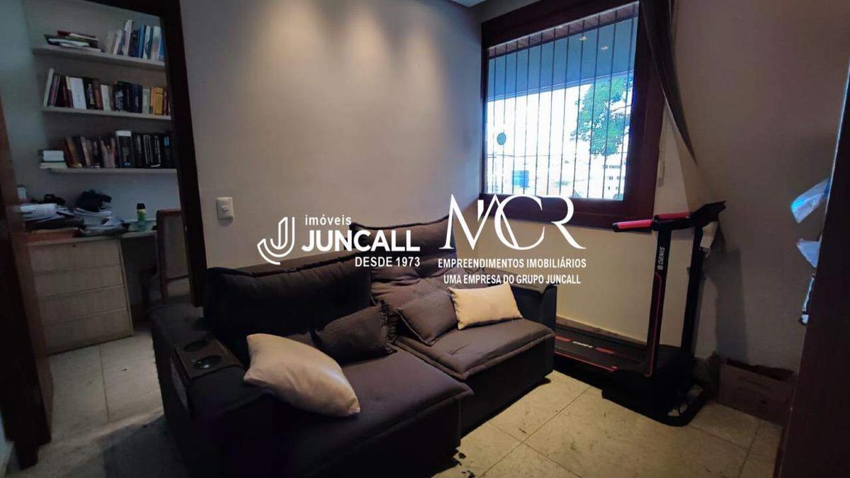 Casa com terreno de aproximadamente 425m² sendo 291m² de área construída, distribuídos em Quintal frontal amplo com jardim, varanda espaçosa com vista, sala ampla para 2 ambientes com jardim de inverno, piso em granito, lavabo, sala de TV e escritório. Corredor com rouparia, banho social com armário e box. 4 quartos com armários sendo 2 suítes, uma das suítes é master com ar-condicionado e closet, piso em porcelanato amadeirado.