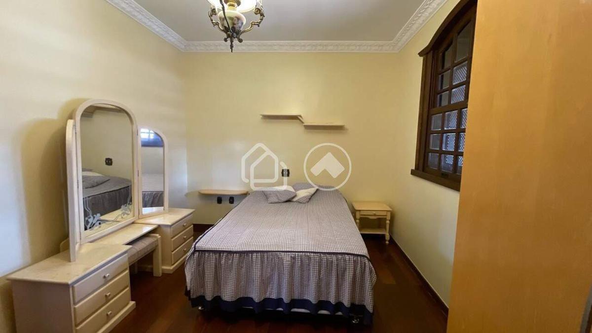 No primeiro andar, há três quartos, sala de estar com varanda, copa, duas cozinhas e banheiro social. A área externa conta com pátio, espaço de lazer coberto com salão, churrasqueira, dois banheiros e um quarto. A garagem acomoda até quatro carros.