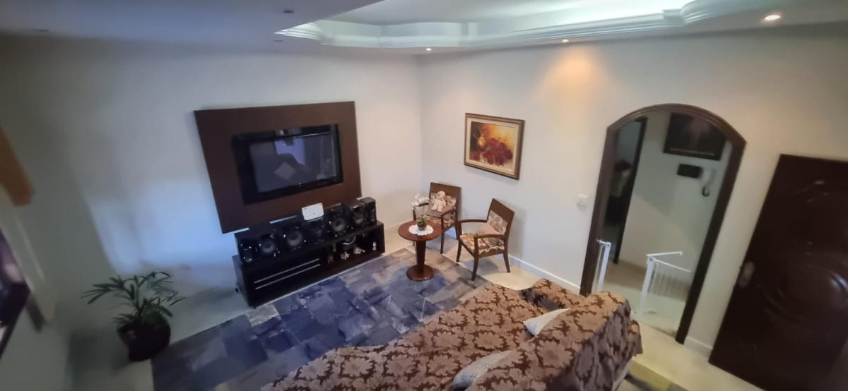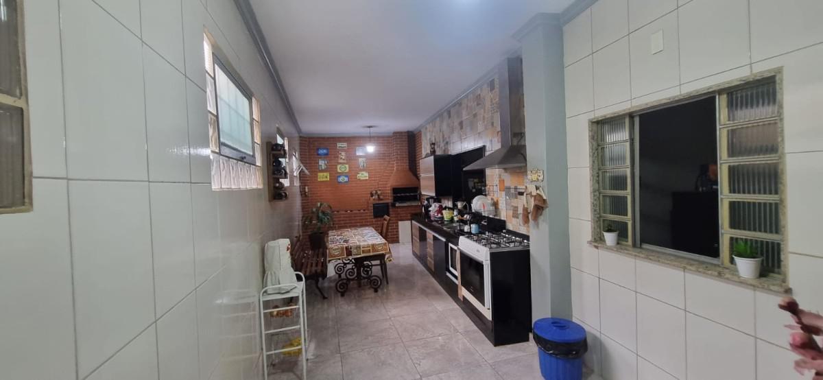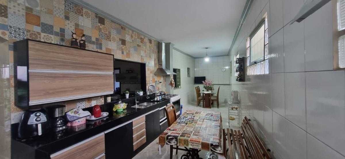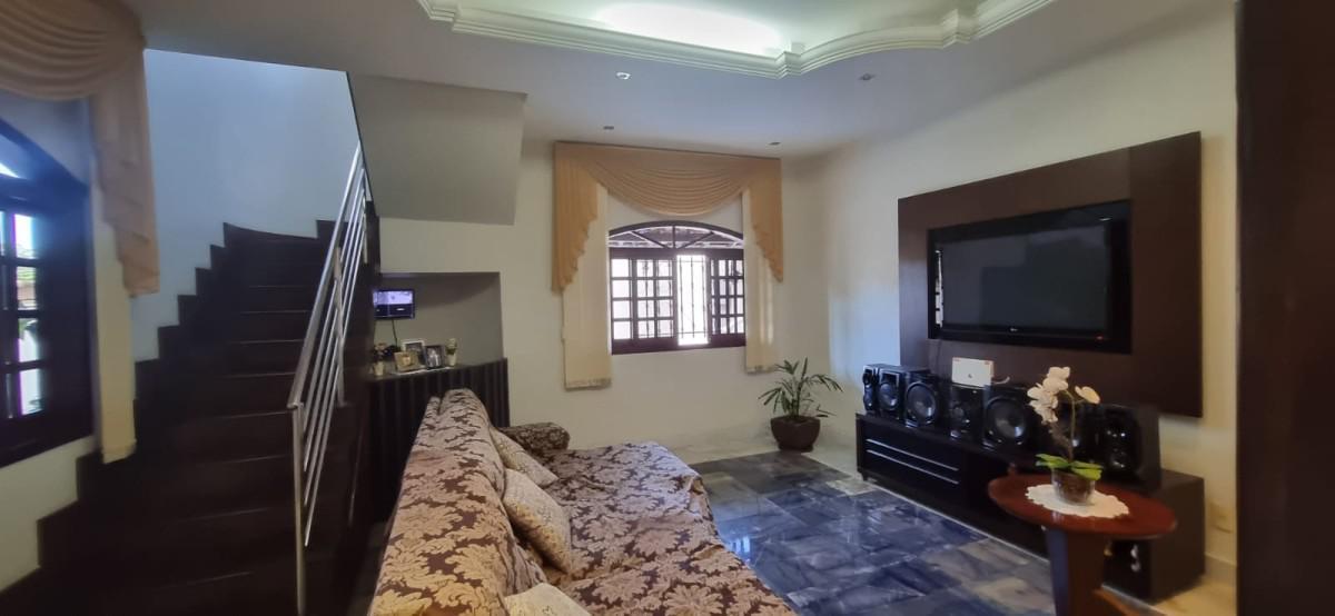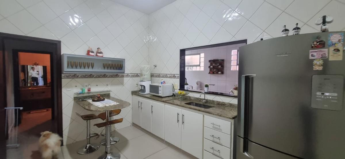 Pavimento inferior: 02 cozinha independentes com armários, sendo 01 com churrasqueira, fogão a lenha e a gás, 01 copa, 01 banho social, 01 sala ampla de estar, 01 despensa, 01 área de serviço;