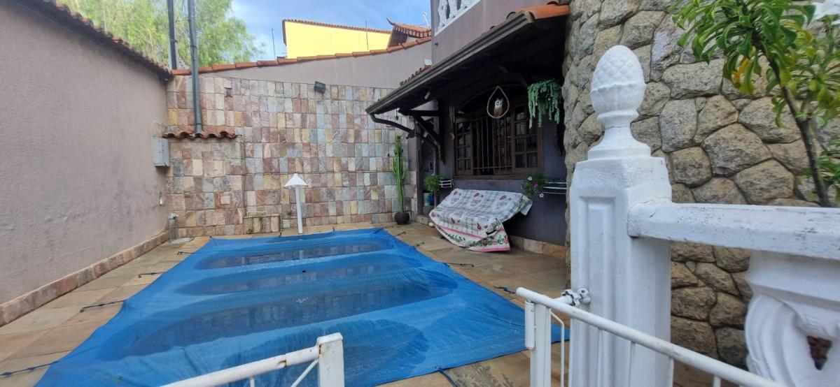 Garagem para até 04 carros, 01 box despejo, pequeno quintal com piscina.