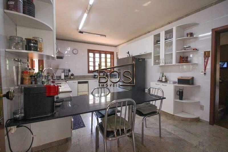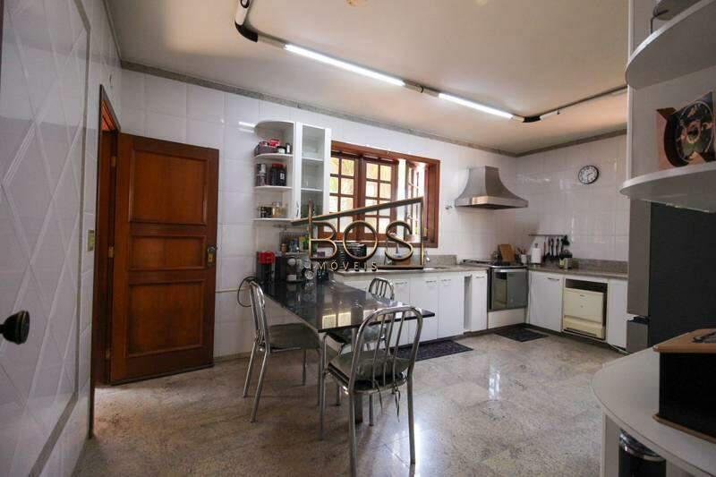 - Cozinha ampla e funcional com armários planejados, triturador na pia, fogão embutido, bancada e piso em granito.