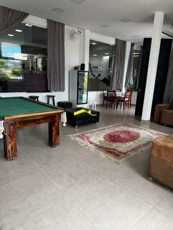 Ampla sala, sinuca, lavabo, sala de TV, sala de jantar, cozinha com armários planejados, despensa, área de serviço, DCE e área externa.