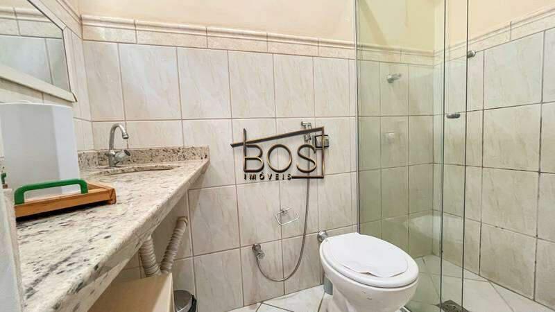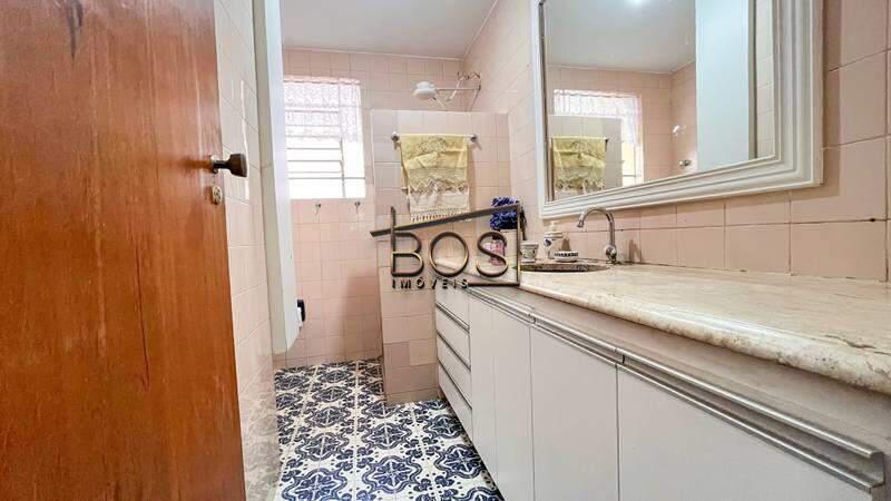 Ambas com bancadas em granito, box em blindex, espelhos, revestimento em cerâmica e armários planejados.