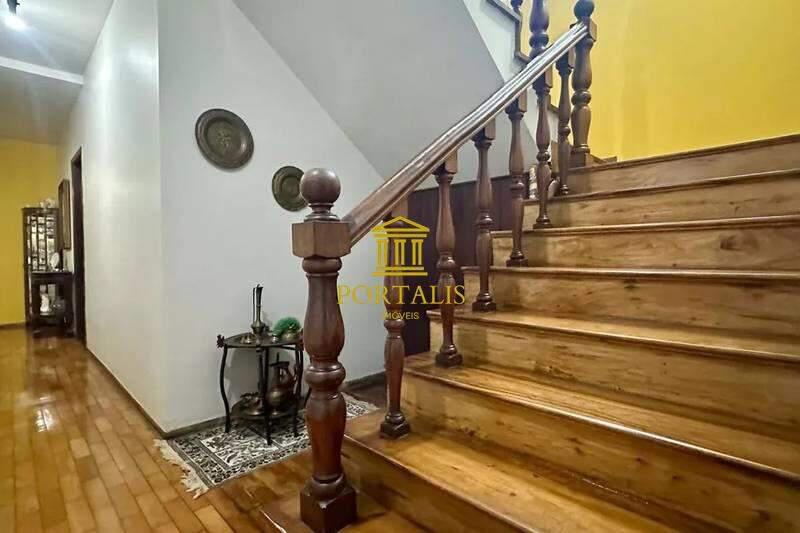 Escada de acesso em madeira maciça, trazendo charme ao ambiente.