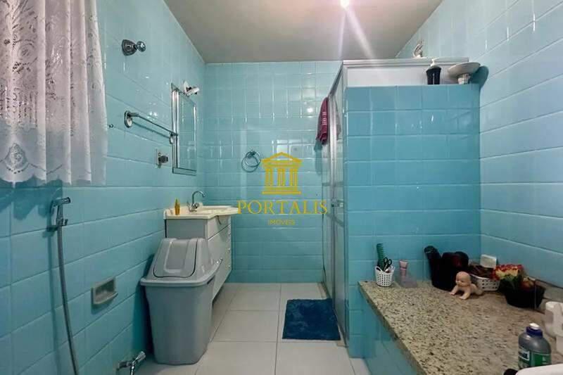 Banheiros (social e suíte) com acabamento em cerâmica, armários planejados e box.