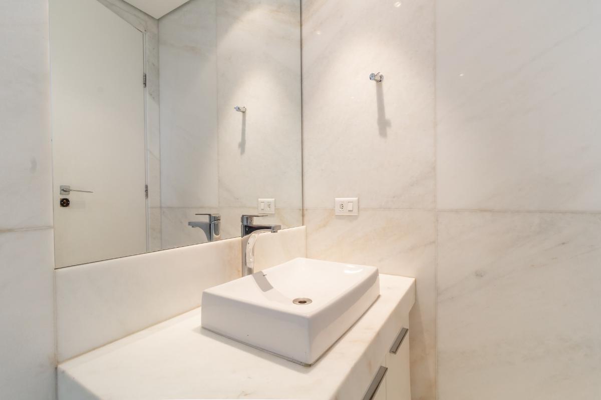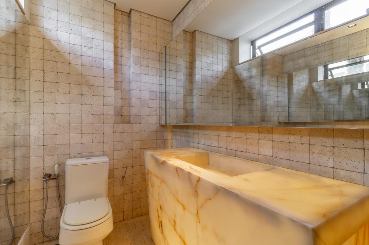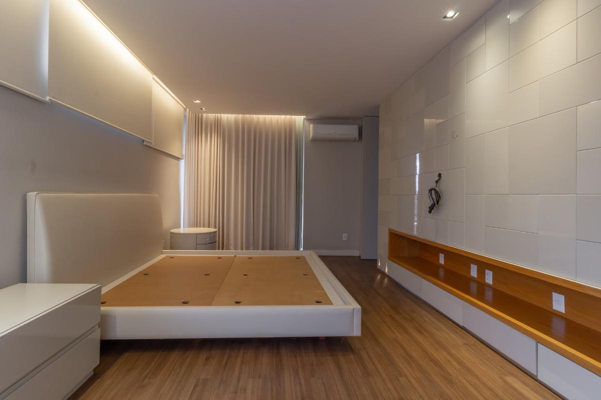No terceiro pavimento fica a parte íntima da casa com sala ampla, quatro suítes com closet e ar condicionado além da máster com varanda e espaço para jardim anexo, banheira de hidromassagem, pia com dois bojos, dois chuveiros, além de rouparia no corredor com uma pia embutida.