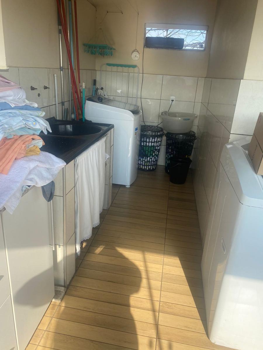 Projeto muito bem distribuído em 2 pavimentos: - 5 quartos, sendo 1 suíte;- Sala de estar e sala de jantar;- 3 banheiros;- Cozinha americana planejada com churrasqueira;- Área de serviço ampla e arejada;- Garagem para 5 carros