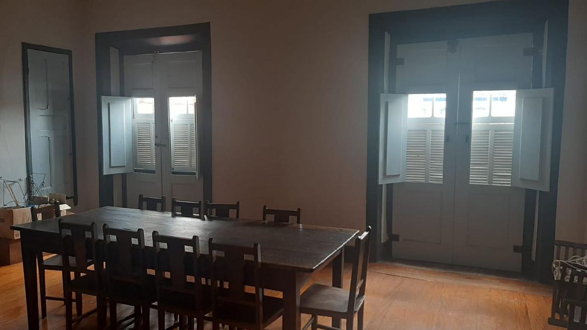 Na entrada tem um corredor a direita uma sala, a frente uma ante-sala com dois quartos interligados com duas portas para a ante-sala. Continuando este corredor a direita por uma porta tem o acesso a um jardim interno, uma saída para o quintal, dois cômodos e um banheiro no porão. Por uma escada de pedra neste corredor segue parte superior chegando ao outro quarto e a sala de jantar com janelões de madeira dupla veneziana e vidros. Seguindo o corredor a direita um quarto, e a frente a sala de jantar, a direita uma porta dando acesso para um jardim interno, dois cômodos no porão da casa com um banheiro e por uma porta têm o acesso ao quintal e uma área livre que vai ate a Rua Aureliano Mourão. A direita da sala tem um quarto que interliga ao quarto do corredor. Desta sala de jantar temos uma escada que nos leva ate o Sótão com dois cômodos e janelões para a parte de trás da casa. A esquerda um banheiro e a frente a cozinha que tem uma porta, descendo pela escada chega-se ao quintal. Há um muro com dois portões dividindo a casa de um terreno que é utilizado para estacionamento com 10 vagas de garagem.