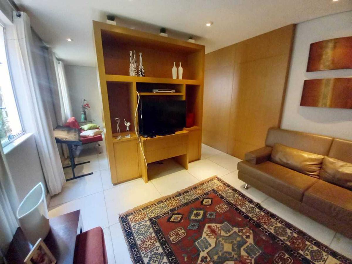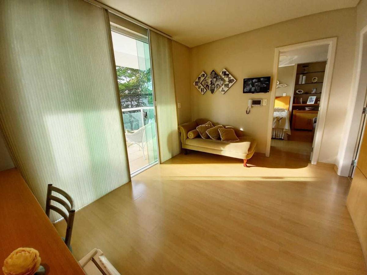 02 Salas amplas para dois ambientes, armários e iluminação planejadas, uma com piso em mármore e outra com piso em granito;