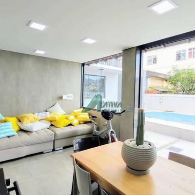 Casa reformada com área total de 370,00m², acabamento de luxo, vista panorâmica, varanda, espaço gourmet, piscina, gás canalizado, quatro salas, escritório, iluminação planejada, cinco quartos, sendo três suítes com armários, closet, cozinha americana, despensa, banho de empregada, área de serviço, três vagas de garagem.