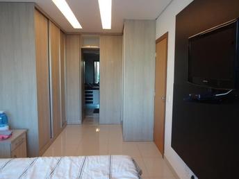 2º NÍVEL: 3 quartos com suítes, suíte master c/armário e banho com banheira de hidromassagem, sala íntima que pode ser feito um novo quarto. Varanda na suíte c/ vista para Condomínio. Acabamento em luxo, corrimão escada em aço inox e vidros; granito alto padrão na escada e bancadas, 2 vagas de garagem paralelas.