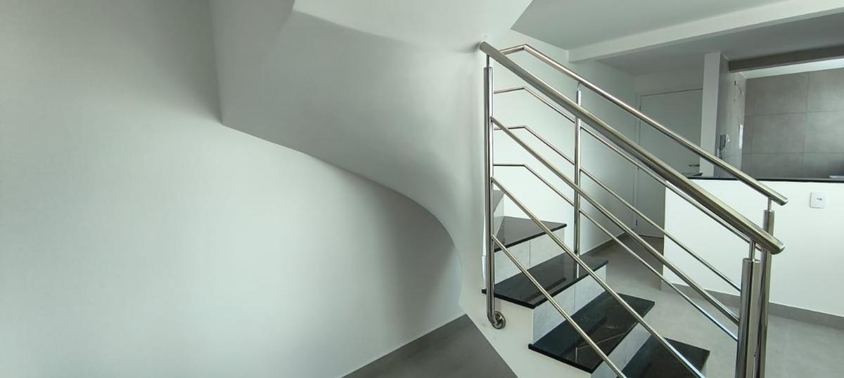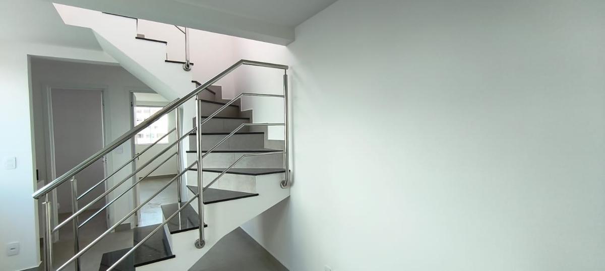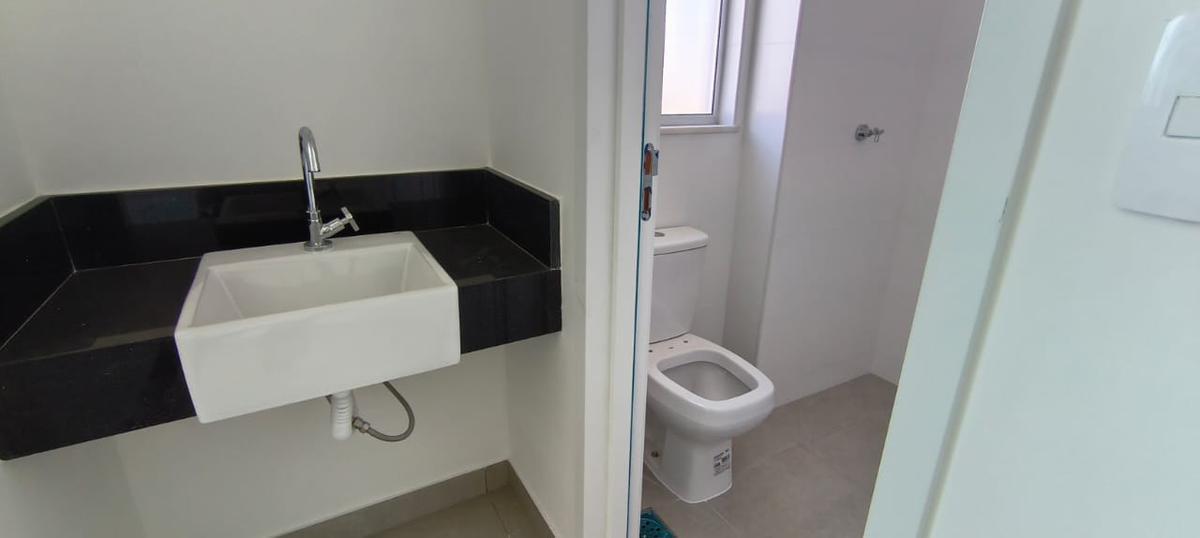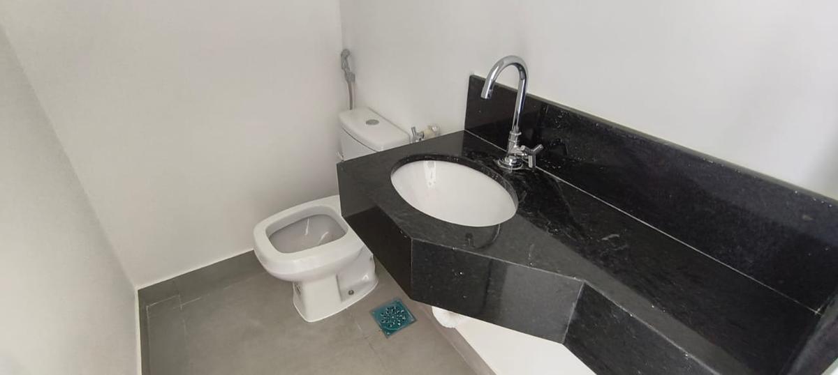 1º piso: Cozinha americana com balcão para a sala, bancada e balcão em granito preto, area de serviço espaçosa conjugada com a cozinha, banho social com toucador, bancada em granito, cuba sobreposta, 01 quarto amplo com piso porcelanato, sala com escada em granito e porcelanato, com proteção em inox, dando acesso ao 2° piso composto de: sala em porcelanato, lavabo, terraço livre, com bancada em granito.