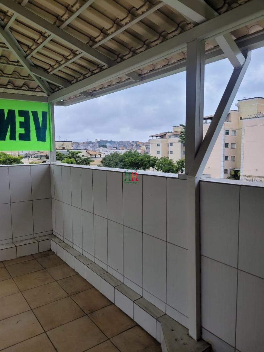 Cobertura Duplex com 2 quartos à venda em Contagem Composta por: 1º andar: 2 quartos; 1 sala conjugada; cozinha com armários; 1 banheiro com box e armários; 2º andar: 1 sala; 1 lavenidaabo; churrasqueira; tanque area externa; área externa toda azulejada; 1 vaga de garagem. condomínio inclui água e gás.