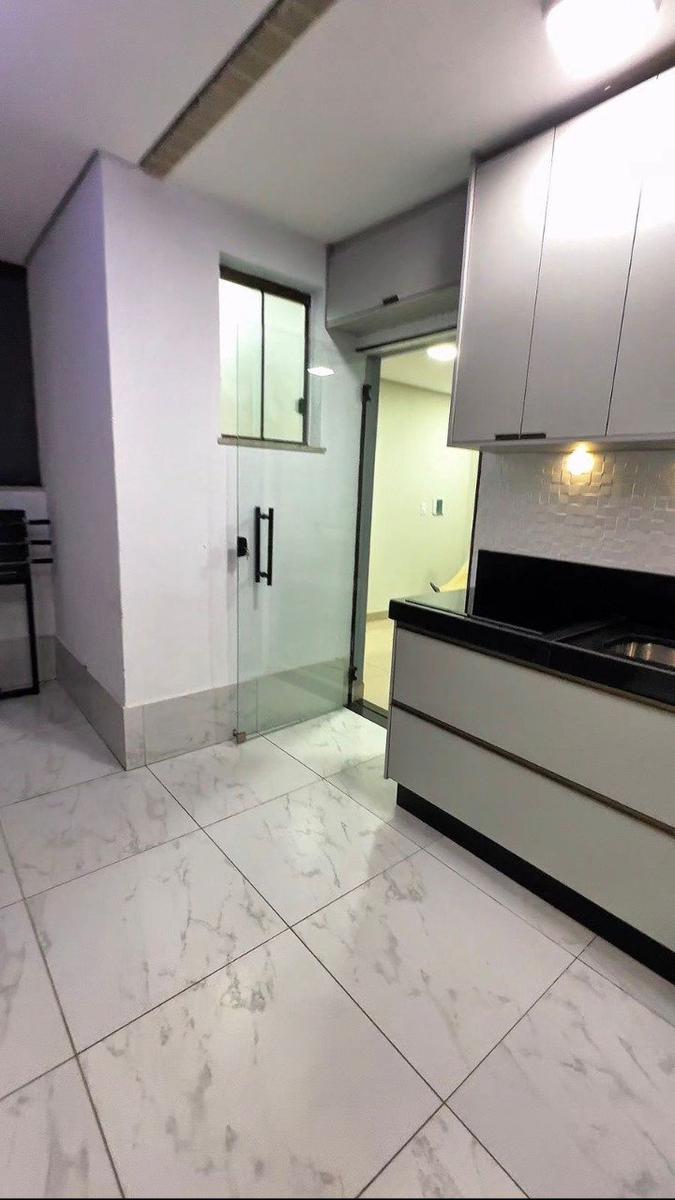 1º Pavimento: 2 quartos com ar-condicionado, sendo um suíte, sala ampla com ótima iluminação natural, e rebaixamento de teto em gesso, cozinha com armários e bancada em granito, área de serviço, banho social com bancada em granito.