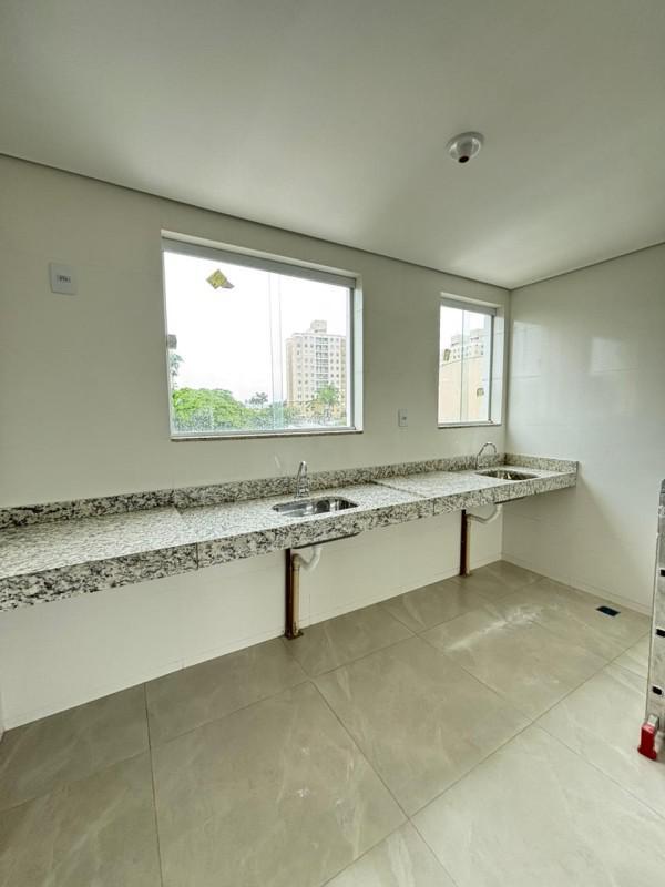 A cozinha espaçosa, com pia em granito e área de serviço integrada, foi pensada para oferecer praticidade sem abrir mão do design moderno.
