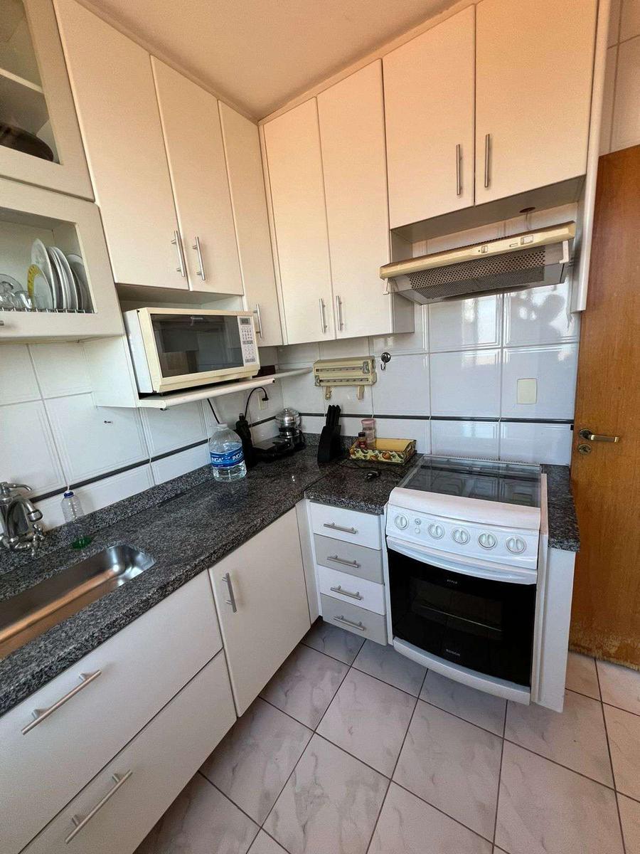 Cozinha com bancada e piso em cerâmica;