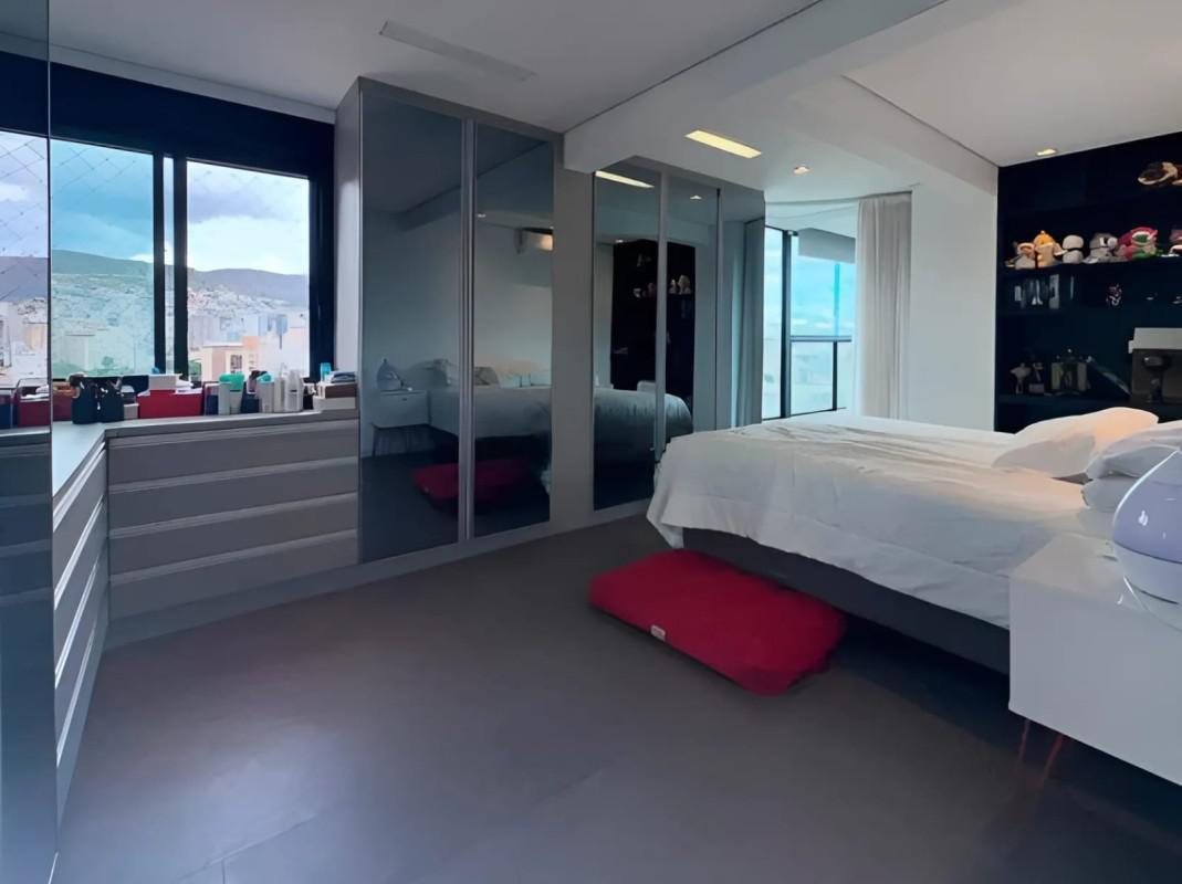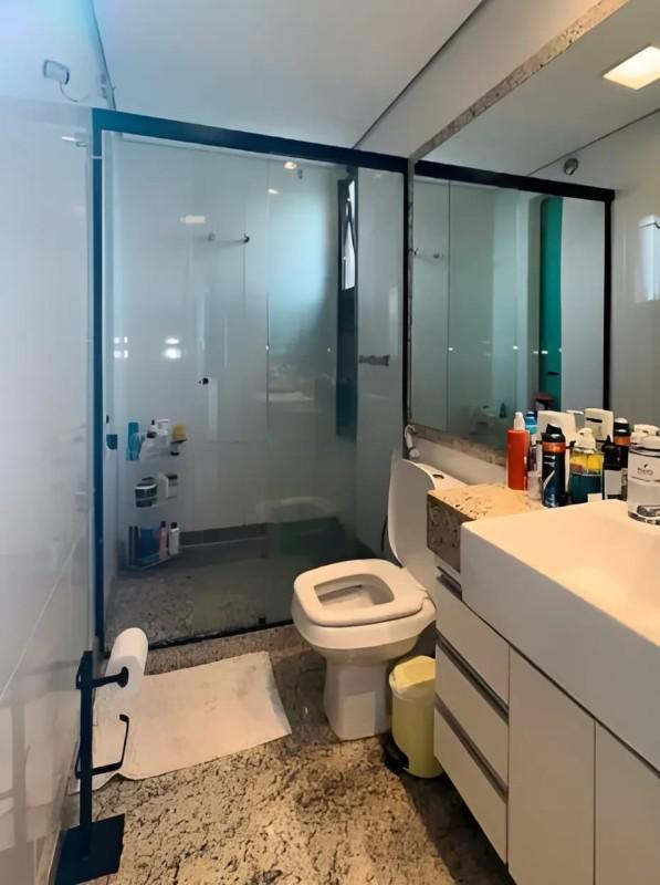 No primeiro nível, você encontrará uma sala ampla para 2 ambientes com piso em porcelanato, rebaixamento de teto com projeto luminotécnico, 3 quartos transformados em 2 para ampliar a suíte máster, com excelentes armários e ar condicionado, uma suíte máster com varanda, 1 banheiro social, cozinha americana toda planejada e área de serviço com armários.