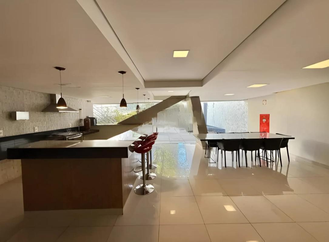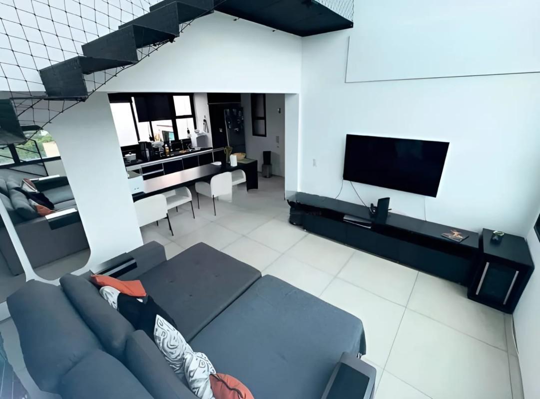 No segundo nível, uma sala para 2 ambientes com piso em porcelanato, rebaixamento de teto com projeto luminotécnico, 1 banheiro, ampla área externa com espaço gourmet todo montado e jacuzzi. Além disso, conta com 4 vagas de garagem livres, cobertas, demarcadas e box despejo.