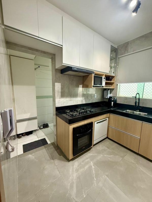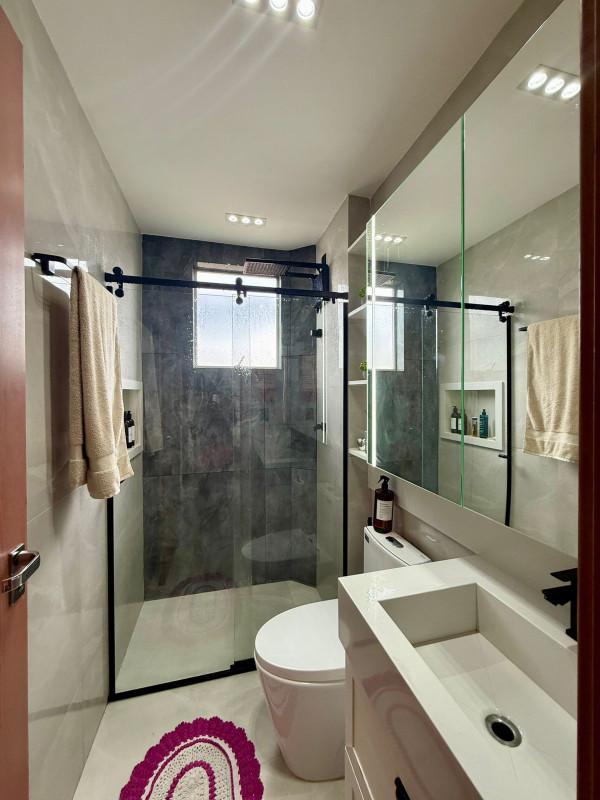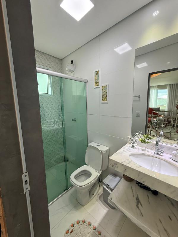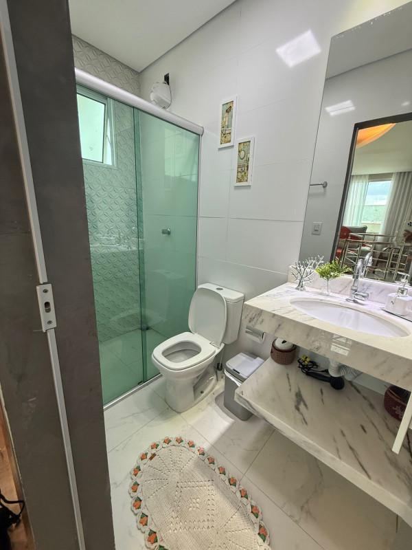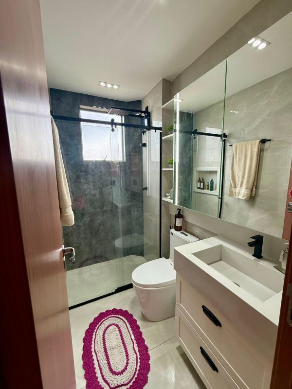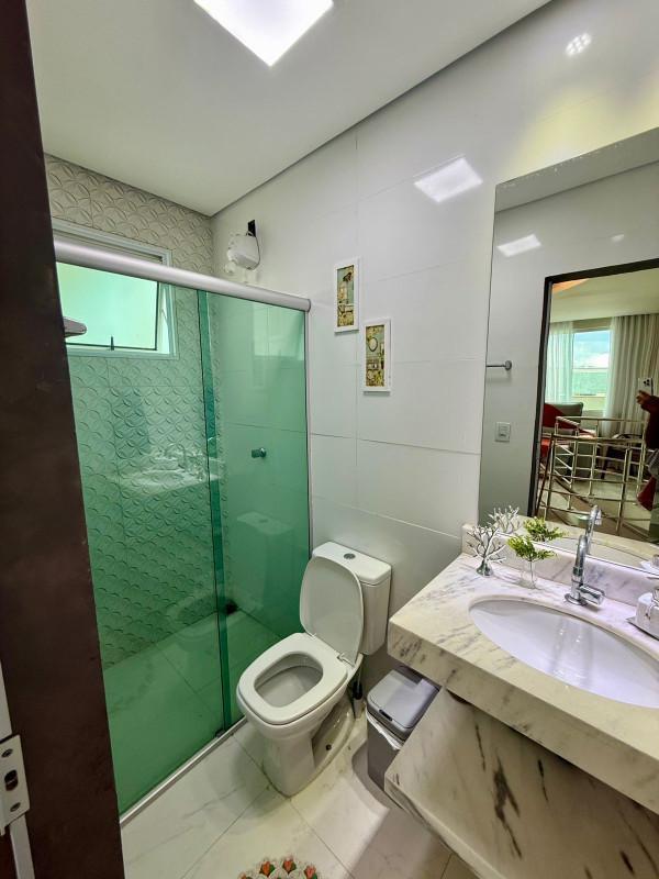 No primeiro pavimento, descubra dois quartos aconchegantes, com piso em laminado de madeira, teto rebaixado e armários planejados. A sala de jantar é ampla, revestida em porcelanato com teto rebaixado, criando um ambiente elegante. O banho social é 100% revestido, com bancada em granito, armário, box e espelho. A cozinha, também 100% revestida, conta com bancadas em granito e armários planejados, integrada à área de serviço, separada com praticidade.