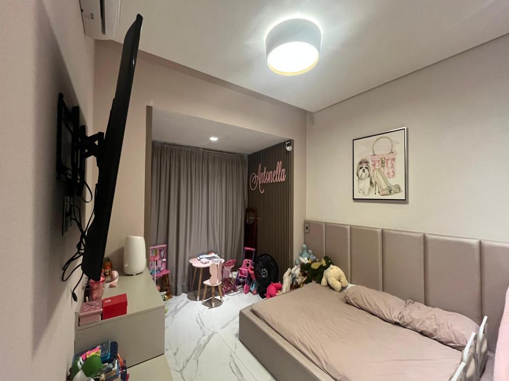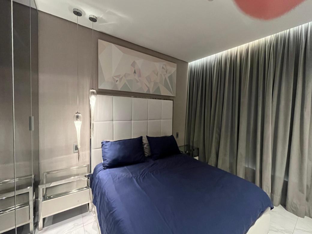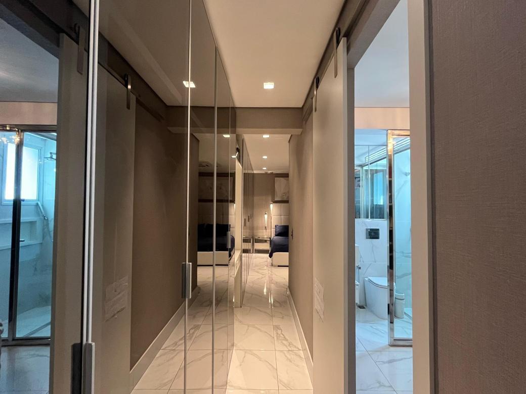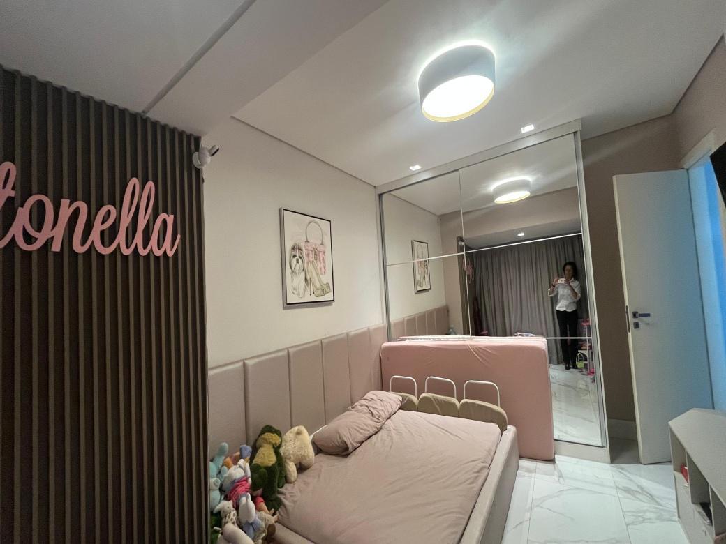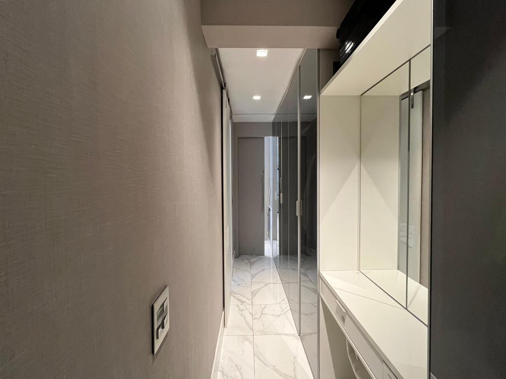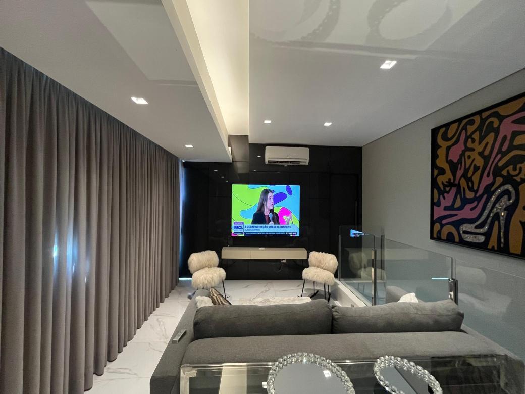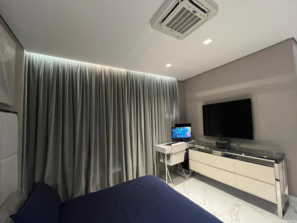 1 Piso:Salao para 2 ambientes, teto rebaixado com iluminacao indireta, ar-condicionado, 2 quartos com armarios espelhados sendo 1 transformado em home office e a outra suite ampla . Cozinha americana montada e planejada.