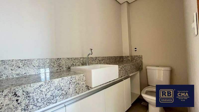 Sala ampla com pé-direito duplo, excelente luminosidade natural, ar-condicionado e piso em porcelanato.