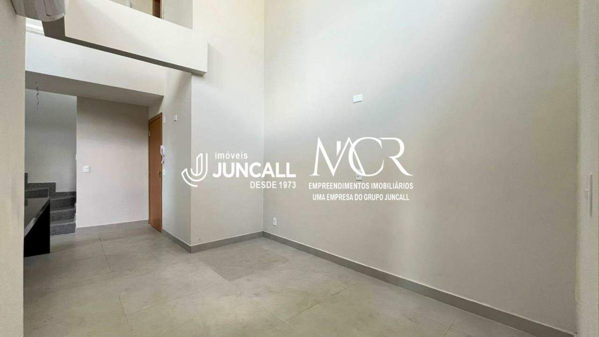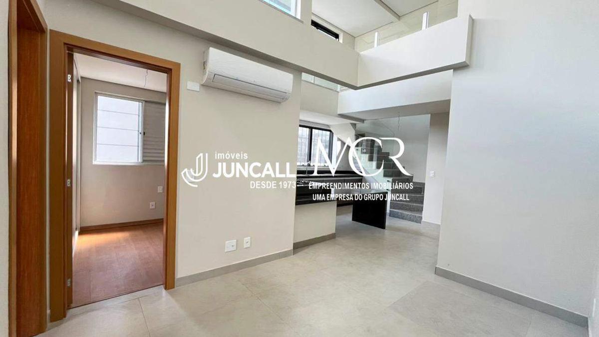 Sala ampla com pé-direito duplo, muita luminosidade natural e ar-condicionado instalado;