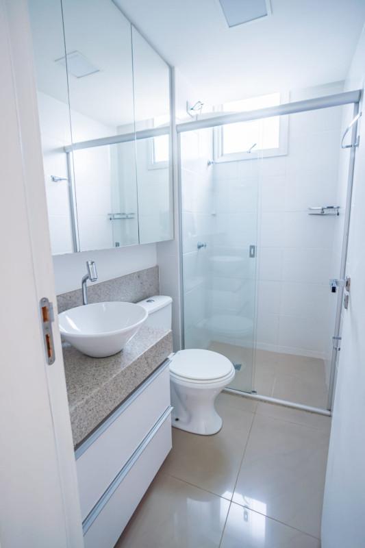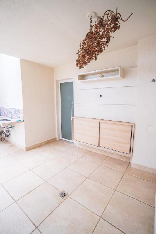 São aproximadamente 94m² de área útil, sala para 2 ambientes com piso todo em porcelanato, cozinha montada com armários planejados, área externa parcialmente coberta e com churrasqueira, solarium e ducha, área de serviço independente e com armários.