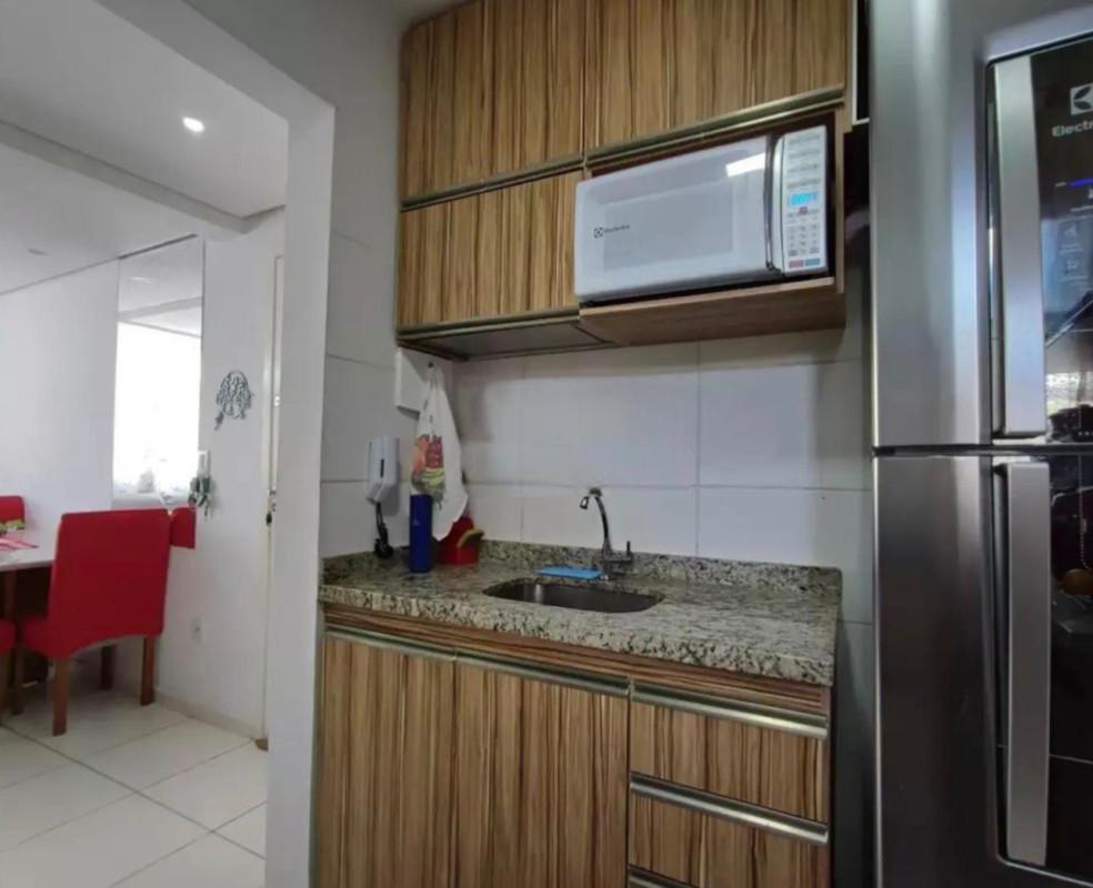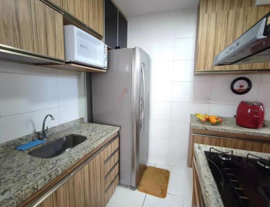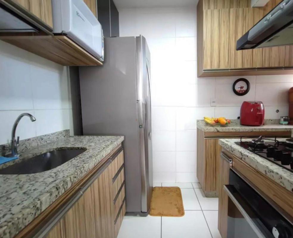 - Cozinha com armários, fogão cooktop e forno