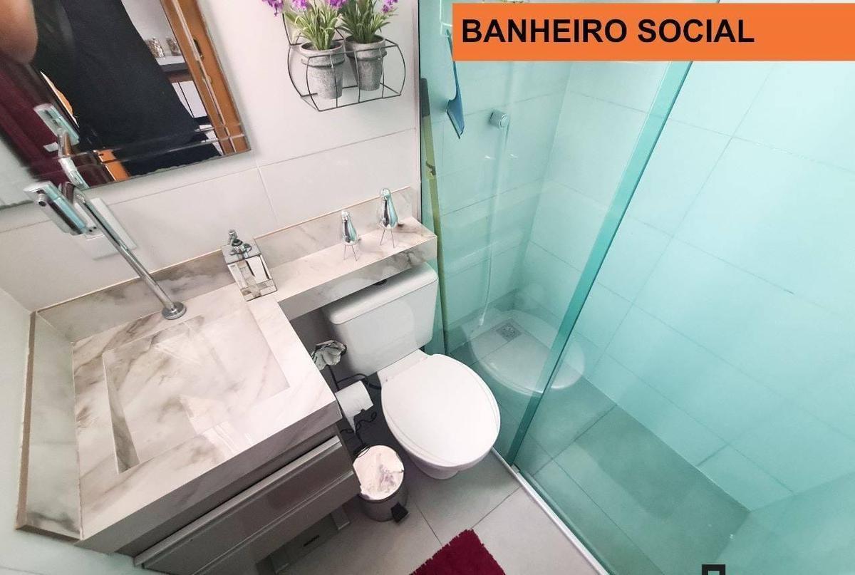 - Banheiro com Bancada Armário e Box Blindex.