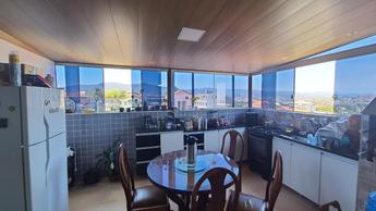 Cobertura: São dois quartos, duas salas, duas cozinhas, área de serviço, dois banhos e uma vaga demarcada coberta e livre, vista para a Serra.