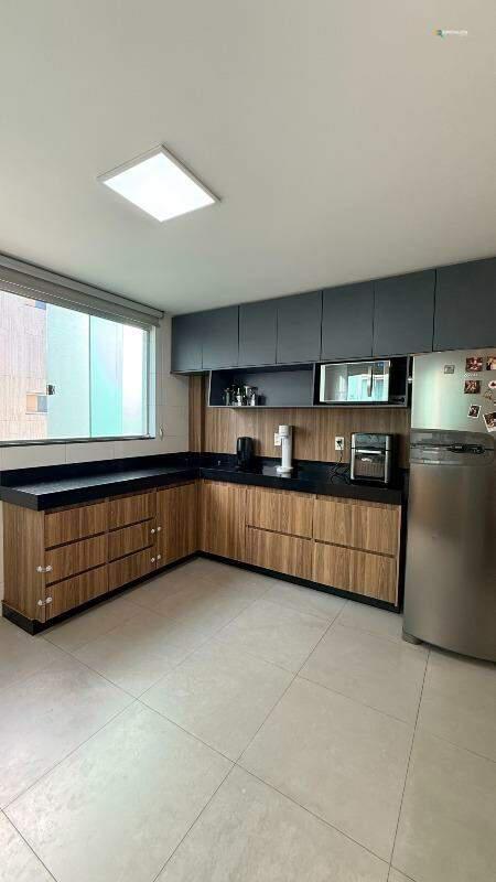 Sala espaçosa, com piso em porcelanato e teto rebaixado. Cozinha grande e iluminada, bancadas em granito, marcenaria completa, além de uma linda bancada em mármore carrara, separando os dois ambientes.