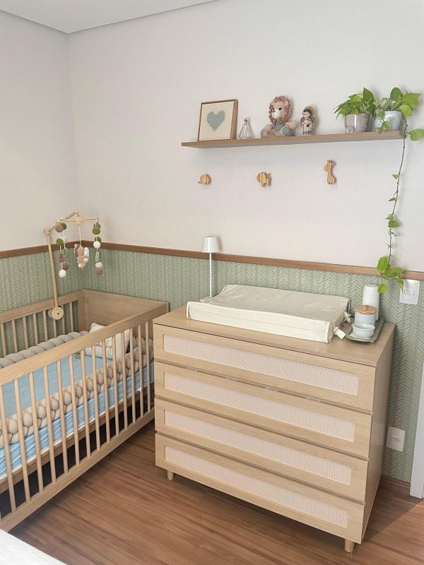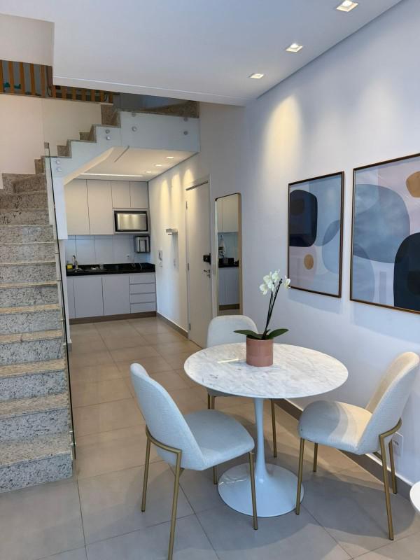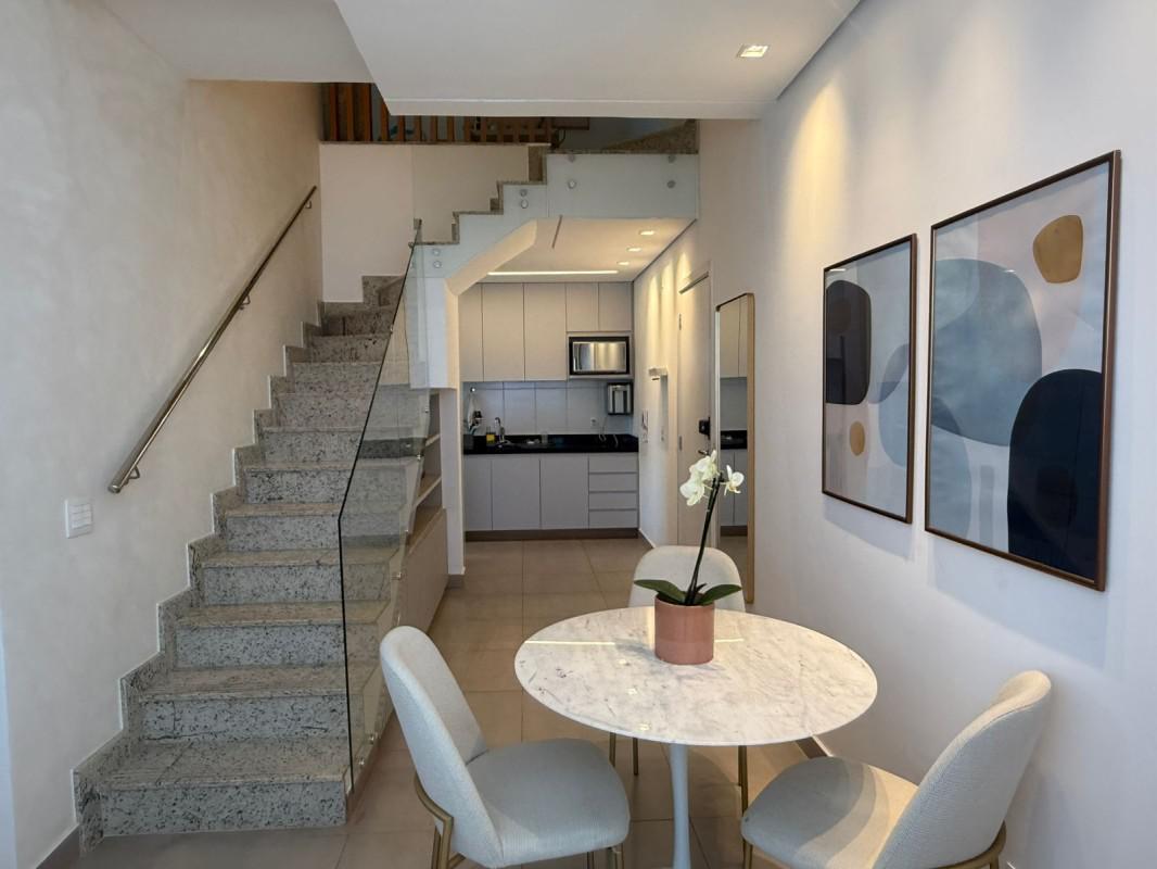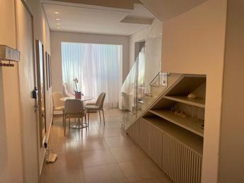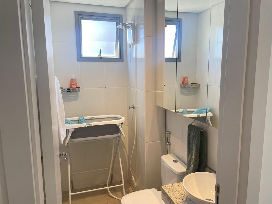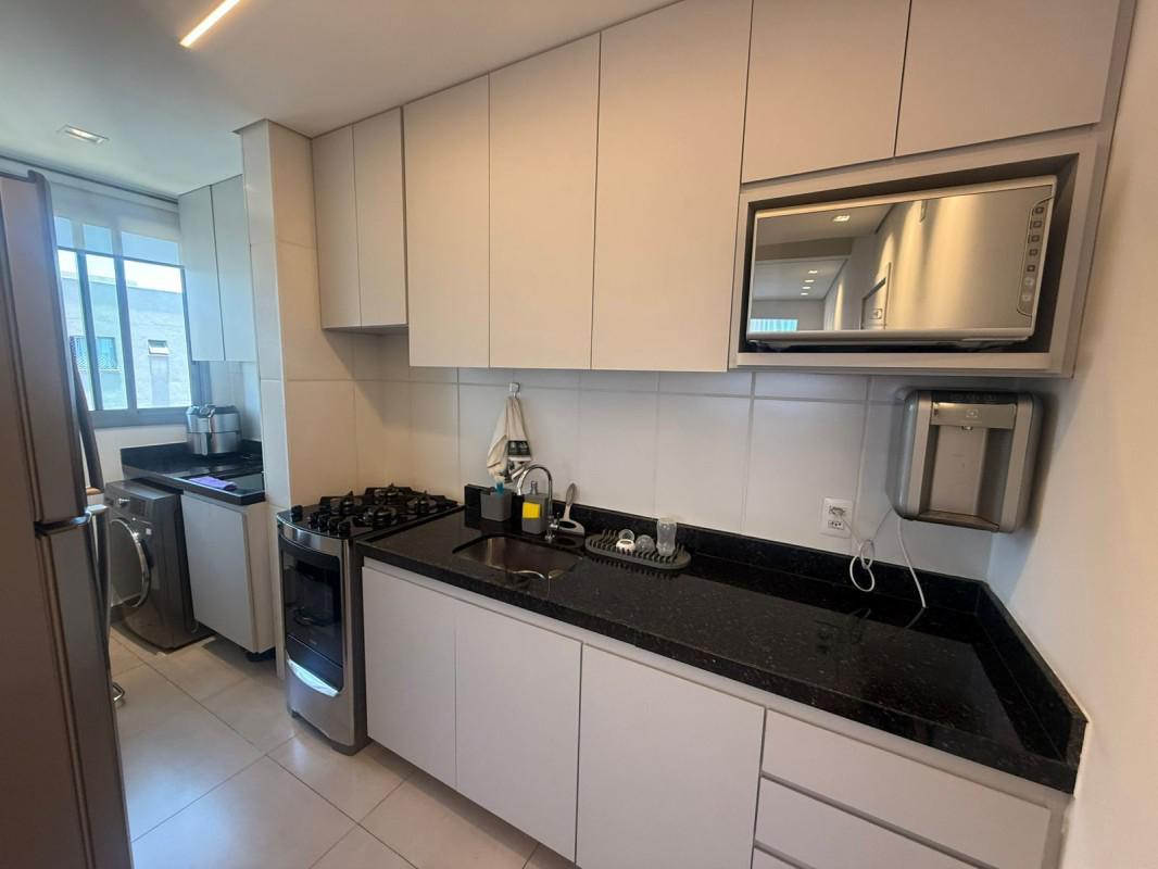 Com piso em laminado de madeira nas partes quentes e porcelanato nos demais cômodos, armários nos quartos, cozinha, banheiros e terraço; bancadas em granito; box em blindex; ar condicionado.