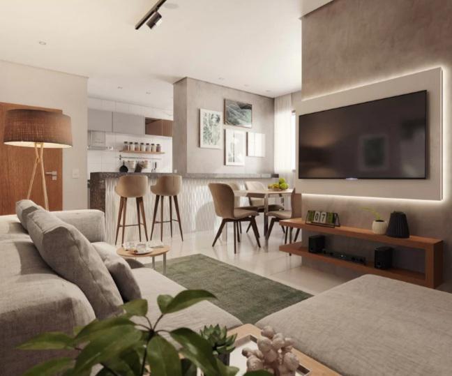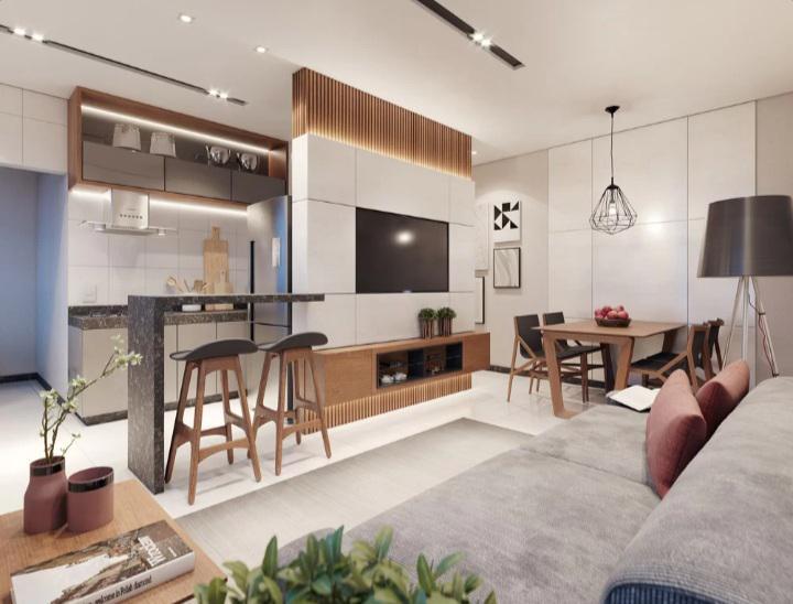 APTO - 1º PISO COM 63,57 M2, COM 2 QUARTOS COM PISOS EM LAMINADO DE MADEIRA, SENDO 01 COM SUITE REVESTIDA, COM BANCADA EM GRANITO, SALA PARA 2 AMBIENTES COM PISO EM PORCELANATO, BANHEIRO SOCIAL REVESTIDO, COM BANCADA EM GRANITO, COZINHA REVESTIDA, COM BANCADAS EM GRANITO, ÁREA DE SERVIÇO SEPARADA.