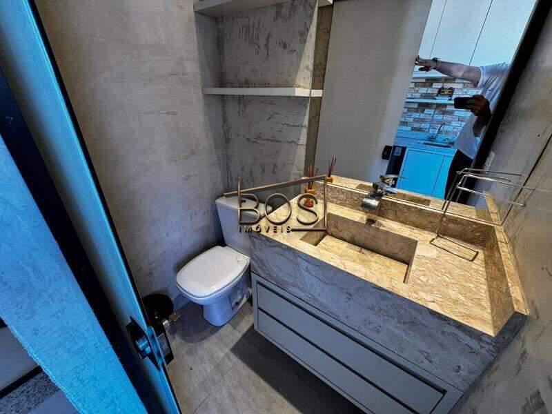- Banhos das suítes com bancada em granito, armário, espelho e box em blindex.