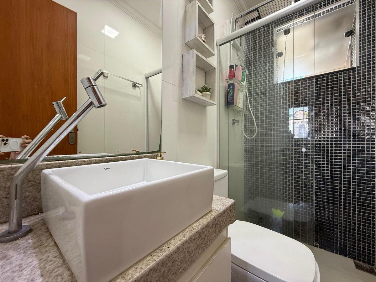 - 01 banheiro social com armários planejados, box blindex e espelho;