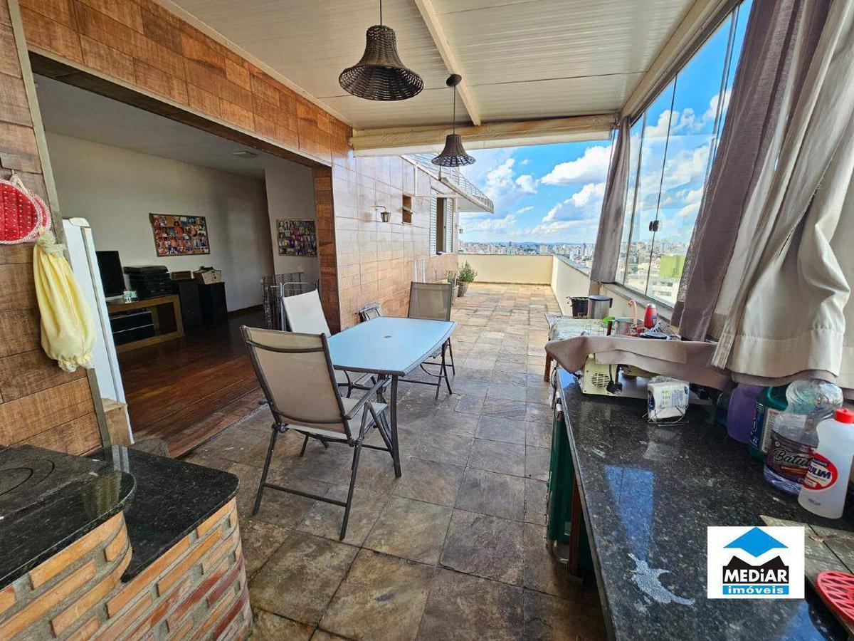 Cobertura na rua hermilo alves, bairro santa tereza, próximo da avenida do contorno. primeiro pavimento: 1 quarto com armário; sala para dois ambientes; banho social com box em blindex e armário; varanda; dce; cozinha com armários; área de serviços; uma vaga coberta para dois carros grandes em linha. segundo pavimento: 1 quarto com armário; banho social reformado; sala; área gourmet com churrasqueira e fogão a lenha com cobertura, restante da área é descoberto; vista espetacular, apartamento arejado, claro e com privacidade. prédio de 12 andares todo revestido em cerâmica, 4 apartamentos por andar, este está situado no décimo segundo, de fundos, recebe sol da manhã, esquadrias em alumínio, interfone, gás canalizado, portão eletrônico, salão de festas, salão de lazer infantil, quadra de peteca, quiosque com churrasqueira, dois elevadores, hall social muito bem decorado, jardins, etc. rua plana, asfaltada, comércio farto nas proximidades (supermercado, padaria, drogaria, restaurantes, etc.). fácil acesso ao centro e área hospitalar.