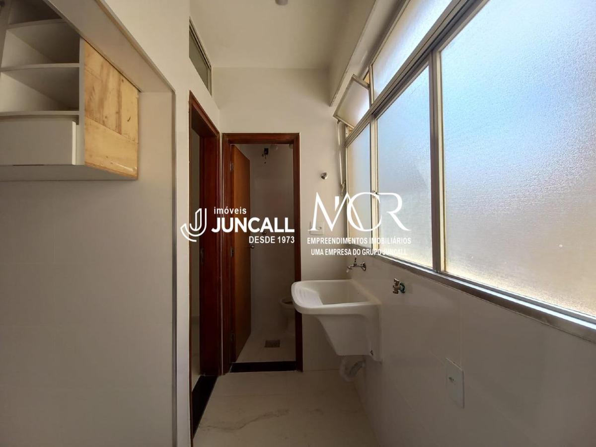 Cozinha com armários, bancada de granito e piso em porcelanato. Área de serviço, quarto e banho serviço.