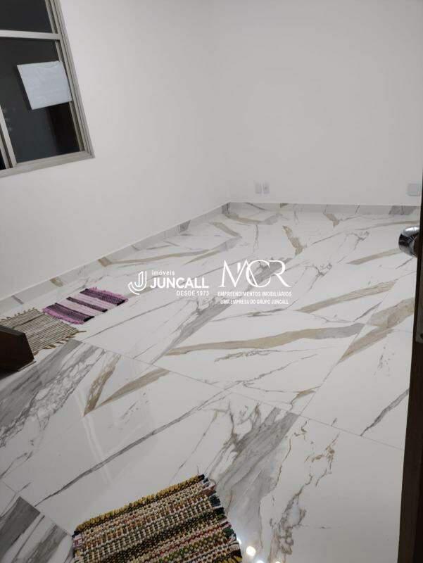 Banho social com armário e box, 2 quartos com armários sendo 1 suíte, piso em porcelanato.