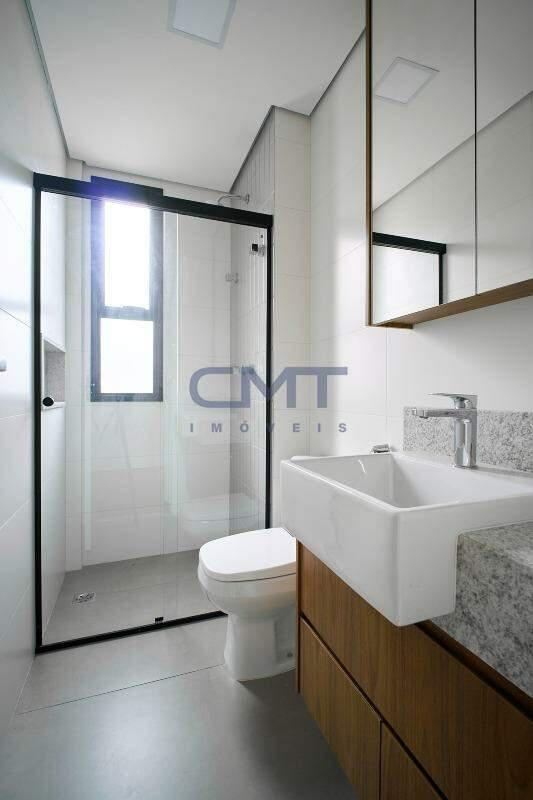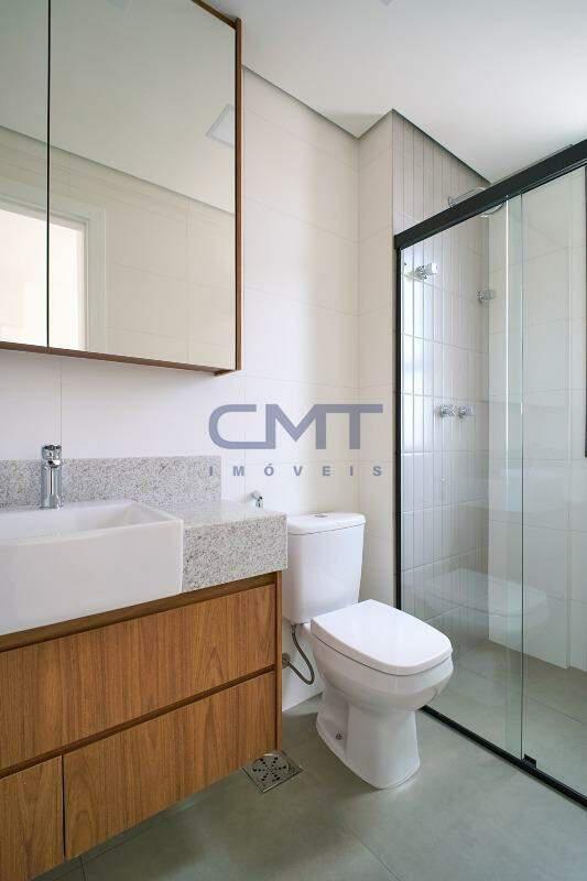 2 amplas suítes. Ambas com box em blindex transparente, armários planejados, piso em porcelanato, bancada em granito e cuba sobreposta.