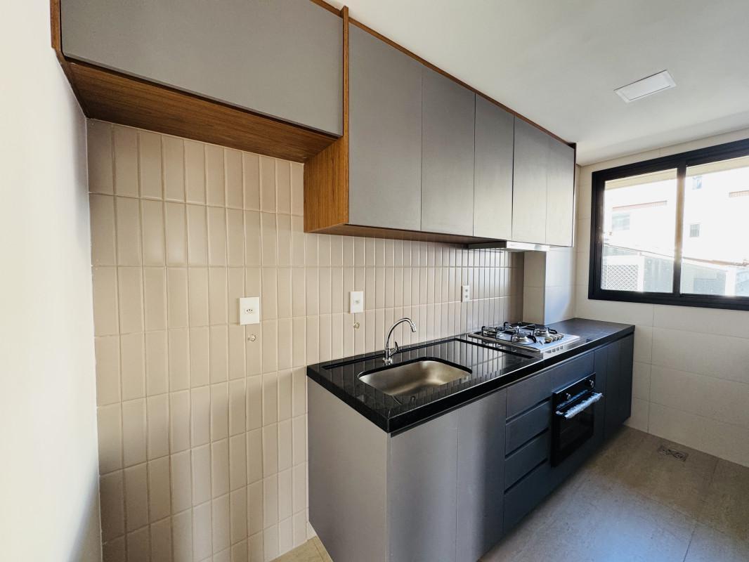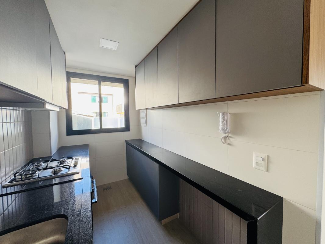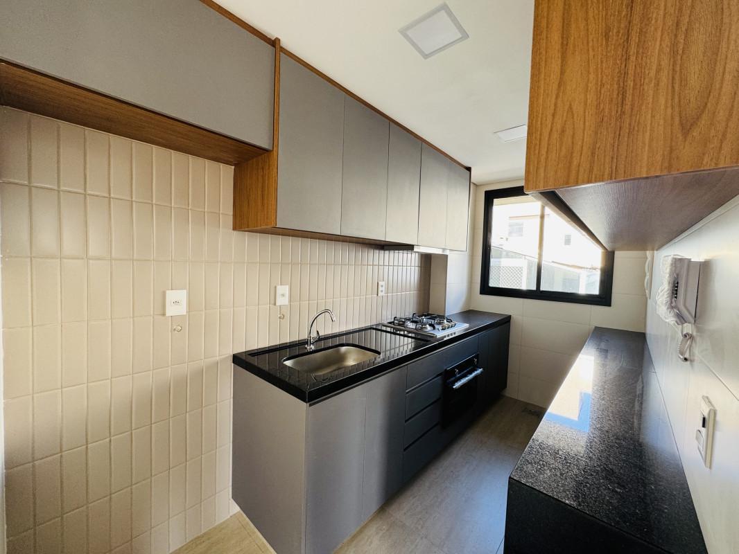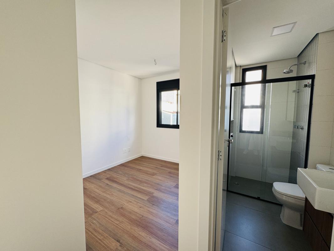 2 quartos (sendo 2 suítes), com piso laminado e armários planejados;